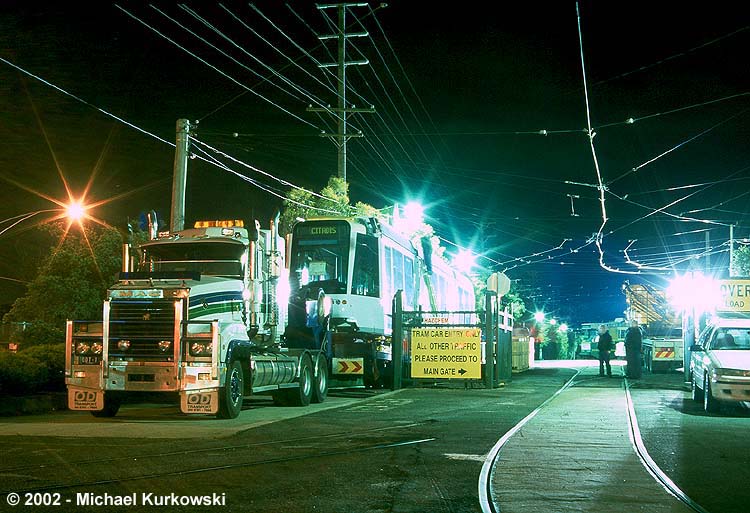 One of the second shipment Citadis trams being unloaded at Preston