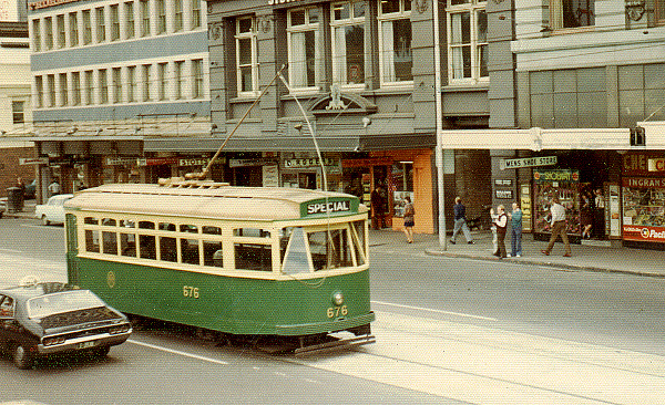 along Flinders Street passing the famous Scholten Shoe Emporium where many tram