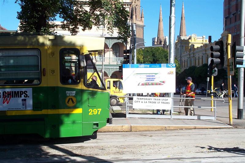 There are temporary stops in Gisborne Street at Victoria Parade