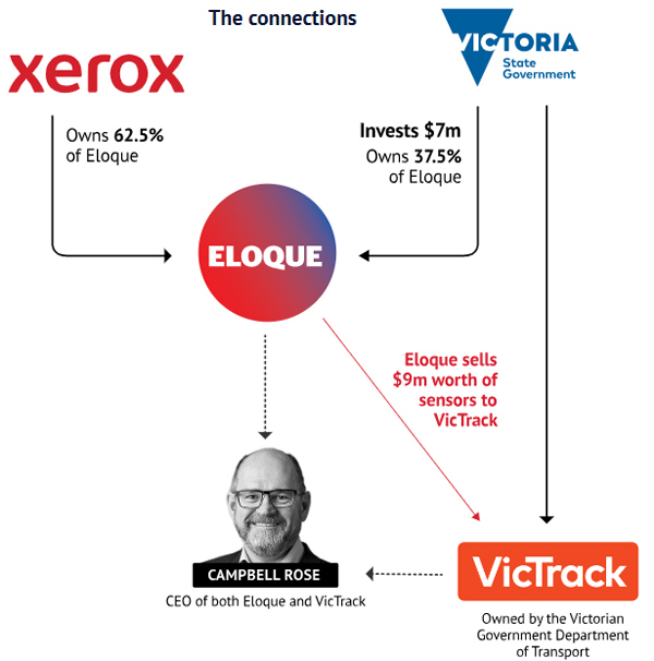 Campbell Rose, chief executive and driving force behind the joint-venture’s ambitious business plans, was also the chief executive of the state rail authority VicTrack, which was Eloque’s only paying customer. A former chief executive of the Western Bulldogs AFL club, Rose was in charge of both VicTrack and Eloque for a period of about 10 months.