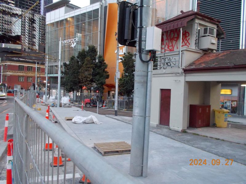 The 'C' photo shows the widened footpath on Swanston St North, and the old signal box.