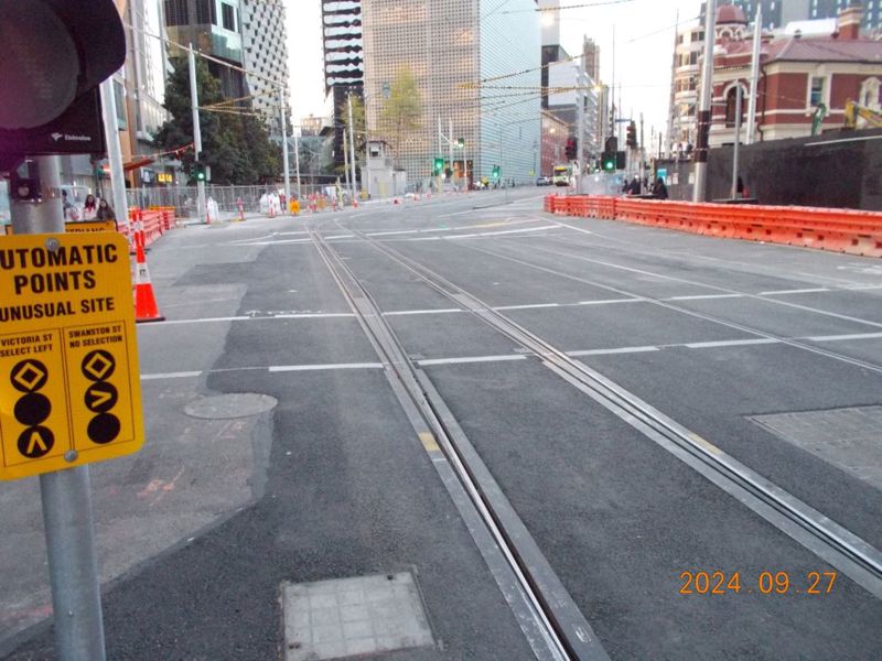 around the corner into Swanston St North. Note also the sign warning of the 'unusual' automatic points. What does the diamond light indicate?