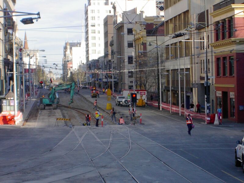Swanston St from LaTrobe to Victoria is being relaid -