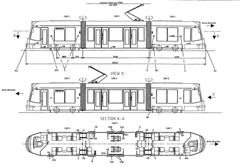I attach a drawing of the new M>tram Combino,