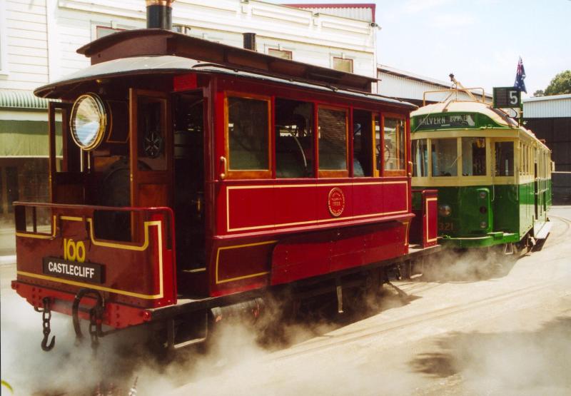 tram motor 100 and the newly rebuilt Melbourne 321.